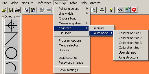 To calibrate the applied objects manual or automatic functions can be used.