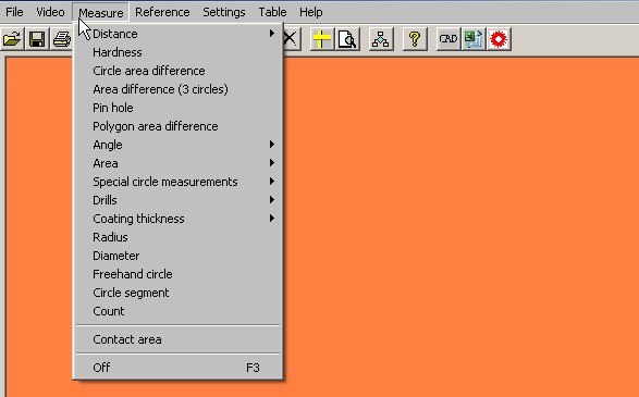 This menu item brings together the various measuring functions.
