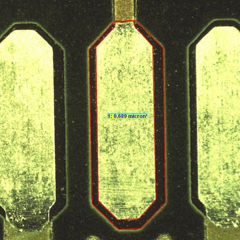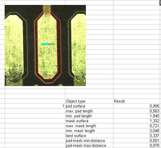 difference, plus 2D measurements, between pad area and mask area .