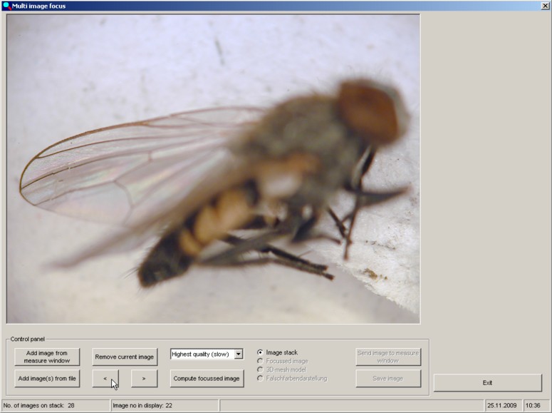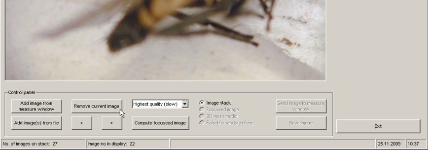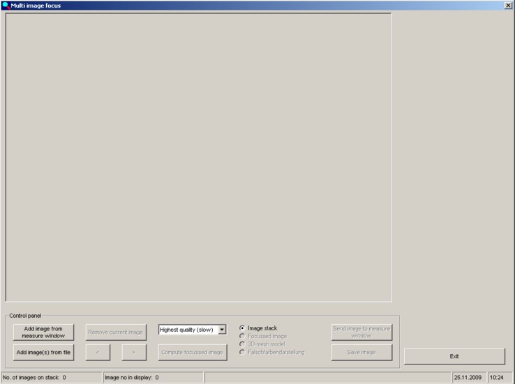 When the loading process is complete the first image appears in the "Focus" window and the